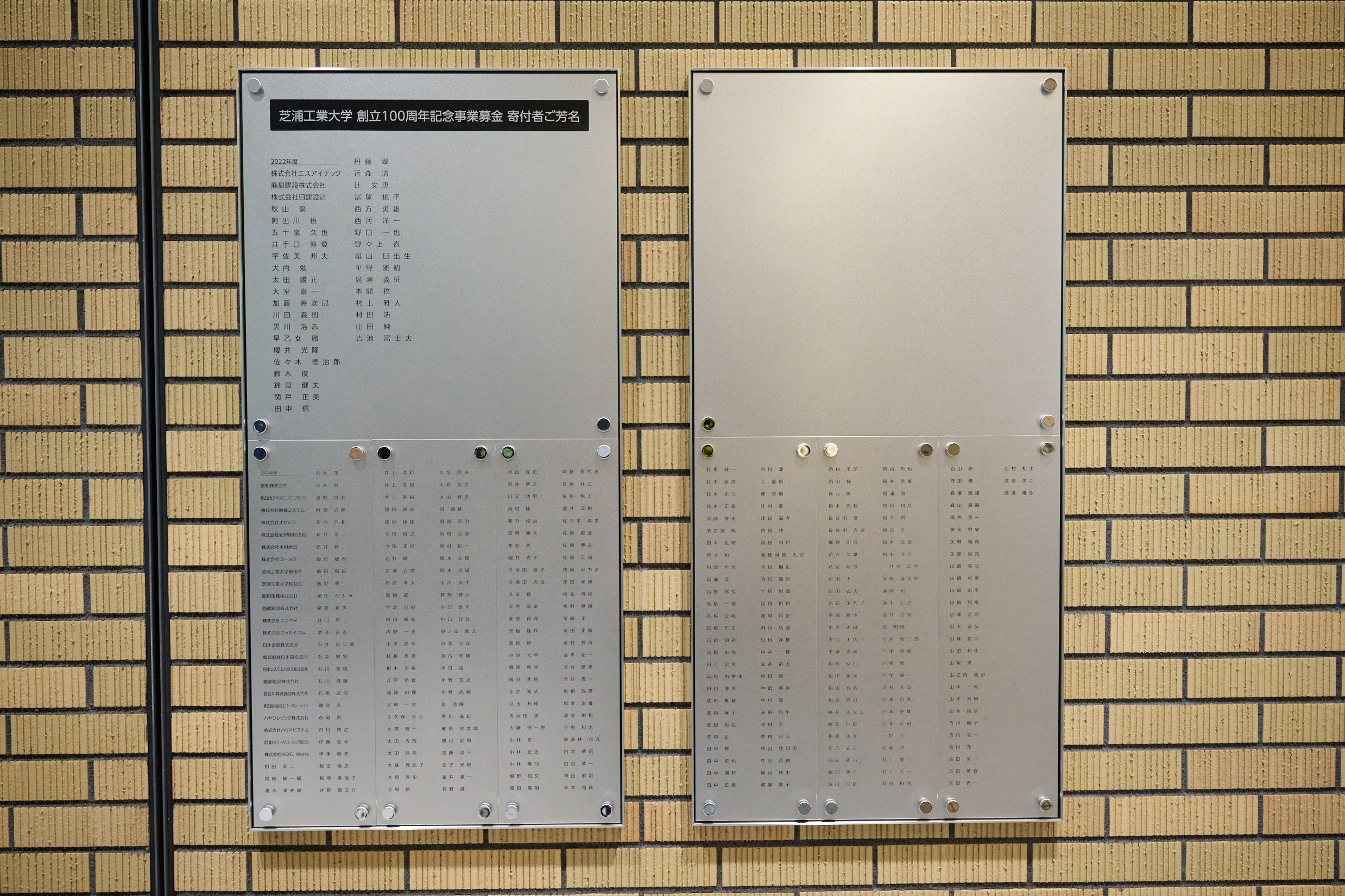 本学に多大なるご厚情をいただいている皆様のうち、寄付金額(累計)により、個人様・法人様・団体様のご芳名を寄付者銘板に刻み、末永く顕彰させていただきます。寄付者銘板は豊洲キャンパス本部棟1階ロビーに設置しています。