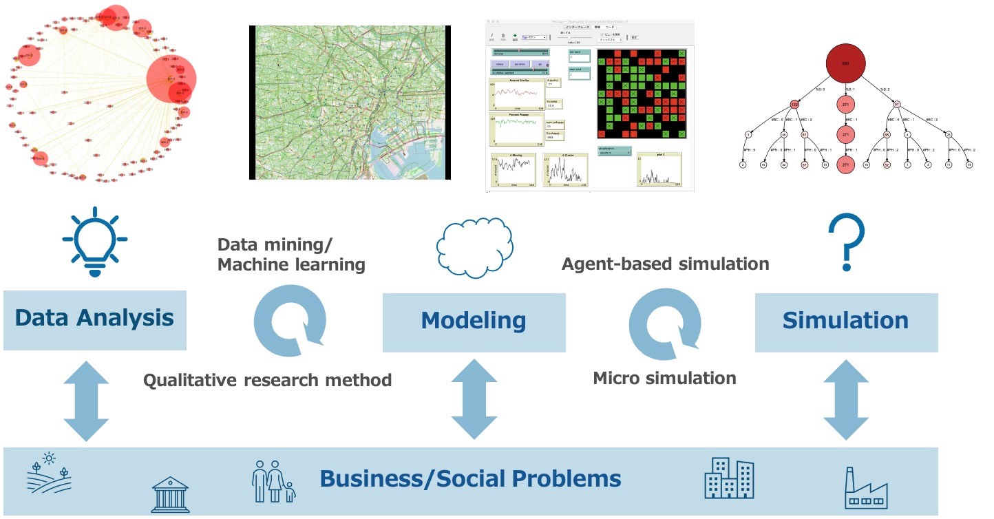 - 社会シミュレーション、データサイエンス、人工知能、アナリティクス、モデリング、システム方法論