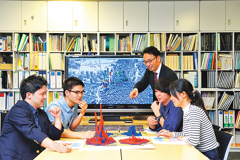 わたしたちが暮らす住宅・建物、その集まりである都市はエネルギーにより機能します。エネルギーに起因する地球温暖化や災害時の停電等による都市機能の麻痺対策は、今後の建築分野における大きな課題です。わたしたちの研究室では、エネルギーや環境の面から次世代の建築・都市の姿である「スマートコミュニティ」の将来像を探るとともに、それを支える環境設備の計画手法を研究しています。