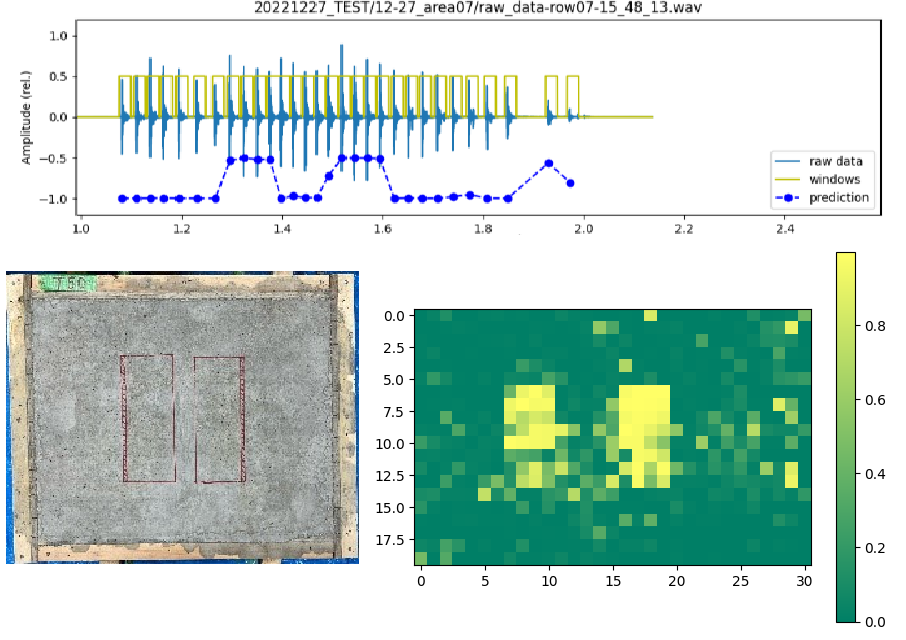 - 回転式連続打音装置によってコンクリート欠陥部をAI機能によって診断する方法の開発