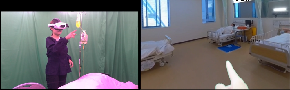 研修医や新人看護師など、医療者の臨床現場における教育訓練の方法を東京大学医学部や神戸大学医学部附属病院と共同で研究しています。現実世界での経験が困難な臨床現場をXR(VR/AR/MR)技術を用いて仮想世界に再現します。それを被験者(医療者)に体験させ、様々なデータを取得・解析することで意思決定要因の解明と意思決定支援システムの構築に関する研究を行っています。