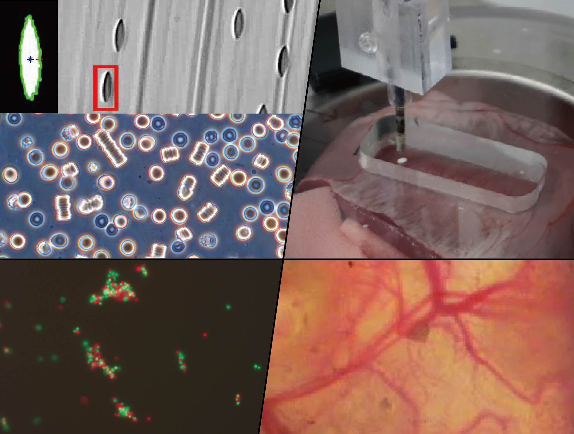 当研究室は、機械工学技術を応用し血液などバイオ流体の挙動解明とその知識を利用した医療技術開発を目標としています。例えば、血液の流れと血栓発生メカニズムの研究、先端医療機器の最適使用法の検討、赤血球変形能の研究に取り組んでいます。流れの可視化、機械設計、精密機械加工、顕微鏡観察、画像解析、高速度ビデオカメラ撮影などの工学技術を利用して、医療の発展に向けた研究を行います。医学研究機関、医療機器メーカー、国内外の研究者と交流があります。