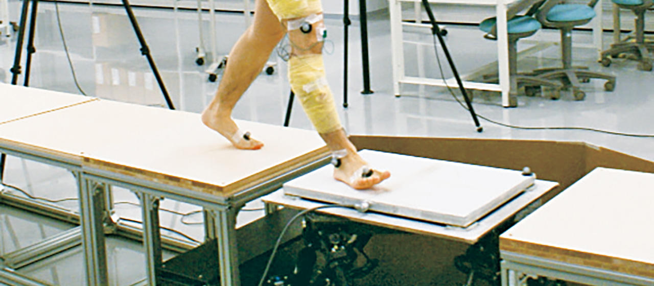 ヒトは二足歩行中に段差や障害があっても無意識に反応し、簡単には転倒しません。これは、機械にまねできない巧妙で複雑な運動制御システムが機能的に作用しているからなのです。しかしながら、高齢者や障がいのある人では、そのような制御システムをうまく使えず、転倒を防ぐことか?困難になります。当研究室では、ヒトの神経や筋の制御システムを解明し、高齢者・障がい者のための支援機器、訓練機器の開発・評価に役立てています。