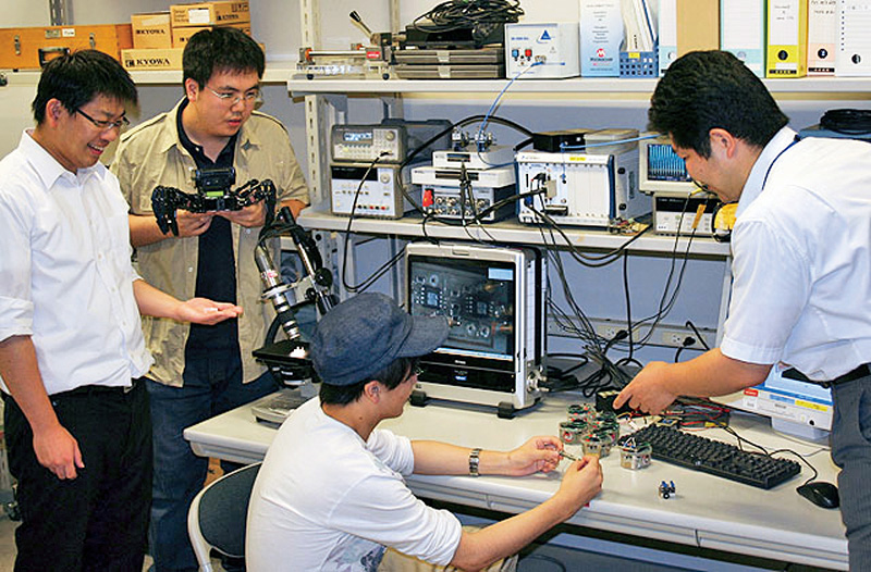 研究室では、組込マイコンや電子回路、機械構造などの設計・製作設備やMEMSデバイスの製作プロセス装置などを自由に使って研究を進めることができます。扱う専門分野が広いので、いろいろなことにチャレンジしたい人におすすめです。