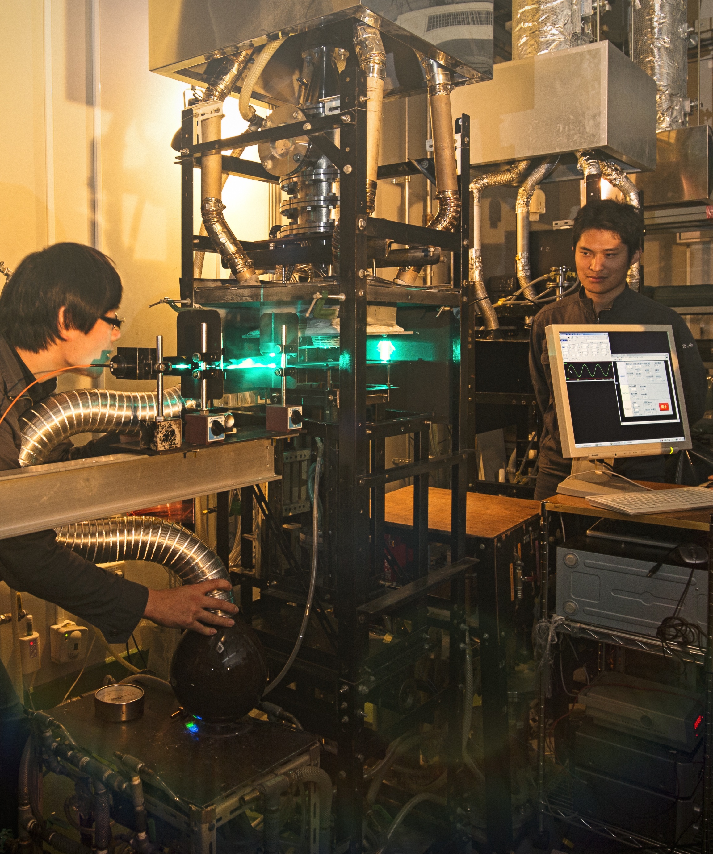 私たちは燃焼や高温流体の研究を行っています。実験にはレーザーを用いるため、高い注意力と知識が必要とされます。毎週のミーティングでは、先生、学生分け隔てなく活発な議論が展開されています。