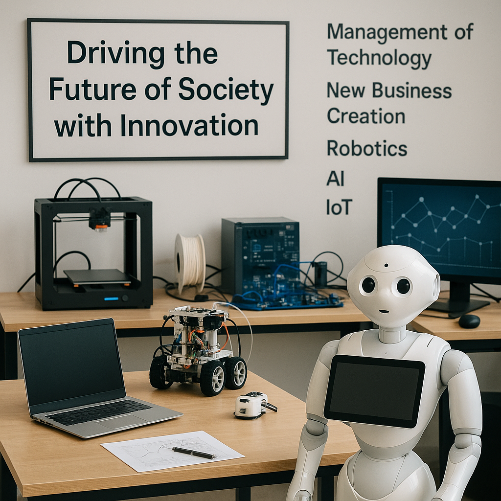 1.持続可能な社会の実現に向けたイノベーションの実現 気候変動、少子高齢化、エネルギー不足などの社会課題に対し、IoT・AI・ロボティクスなどの先端技術を活用した革新的なソリューションを提案・開発します。 2.産業界との連携による実践的な価値創出 企業や自治体との共同研究やプロジェクトを通じて、社会実装可能な製品やサービスを創出し、社会に直接的なインパクトを与えます。 3.アントレプレナーシップの育成と実践 受動的な研究にとどまらず、課題発見・仮説検証・価値創造といった起業家的プロセスを重視し、新規事業やスタートアップの創出を推進します。 4.技術経営人材の育成 MOT(技術経営)の視点から、技術とビジネスの架け橋となる人材を育成し、研究成果を経済・社会的価値に変換する力を養います。 5.グローバルおよびローカル社会への貢献 地域課題から国際的な社会問題まで、多様なフィールドに研究成果を展開し、社会全体のイノベーションと持続可能性の実現に貢献します。