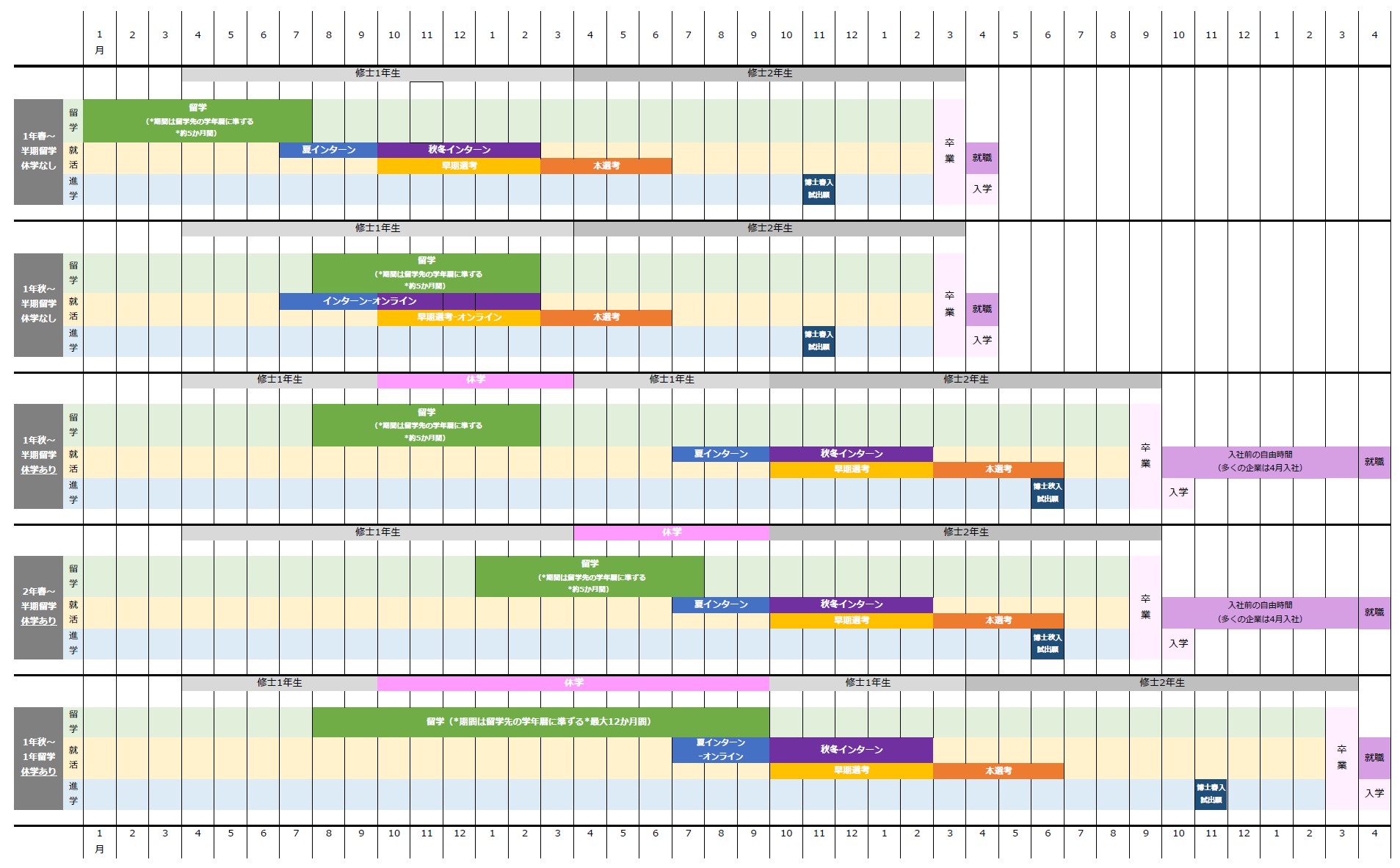- ・こちらはあくまでモデルケースですので、実際の留学計画を立てる際の参考としてください。モデルケースに沿ったスケジュールではなければ留学できないというわけではありません。