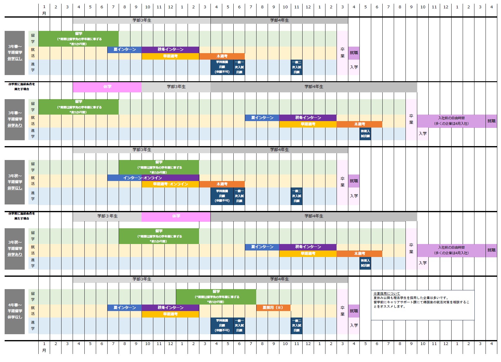 - ・クラス担任/指導教員・学生課(学部生)または大学院課(大学院生)・キャリアサポート課にも留学計画を立てる段階で必ずご相談ください。
