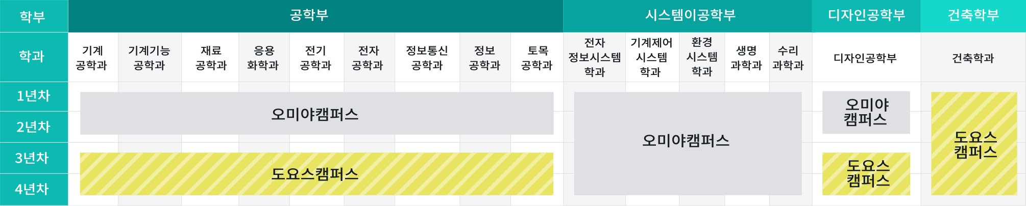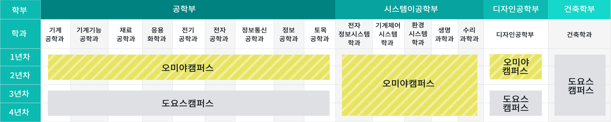 ※선진국제과정(IGP)은 1학년부터 4학년까지 줄곧 도요스캠퍼스