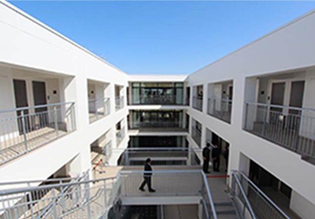 - 방 밖에서는 학우들과 커뮤니케이션을 즐기면서도 개인의 생활은 확실히 보장됩니다. 따라서 일과 휴식의 경계도 확실히 구분할 수 있습니다. 방 면적은 약 17㎡. 온수세정 화장실이 설치된 조립식 욕실과 침대, 책상, LAN 등이 완비된 방에서 공부와 취미 등을 즐기며 알찬 시간을 보낼 수 있습니다.