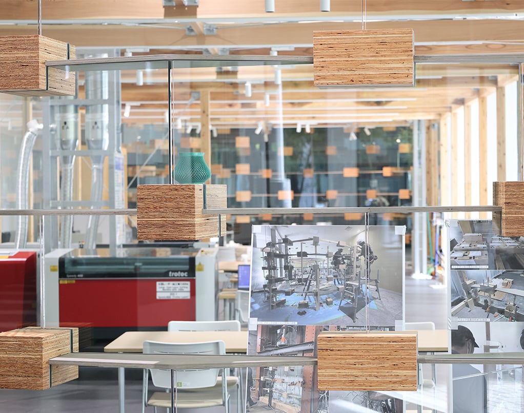 通过与企业和地区的实际合作,在解决课题的同时,推进培养实践型人才的教育。面对企业和地区提出的课题,认真思考如何实现商业化,将想法与技术结合起来制作企划方案,为社会做出贡献。并且进一步制作原型,实际进行提案。另外,还设有供研究生为主的团队发布合作成果的平台。