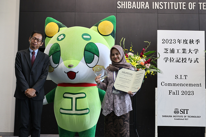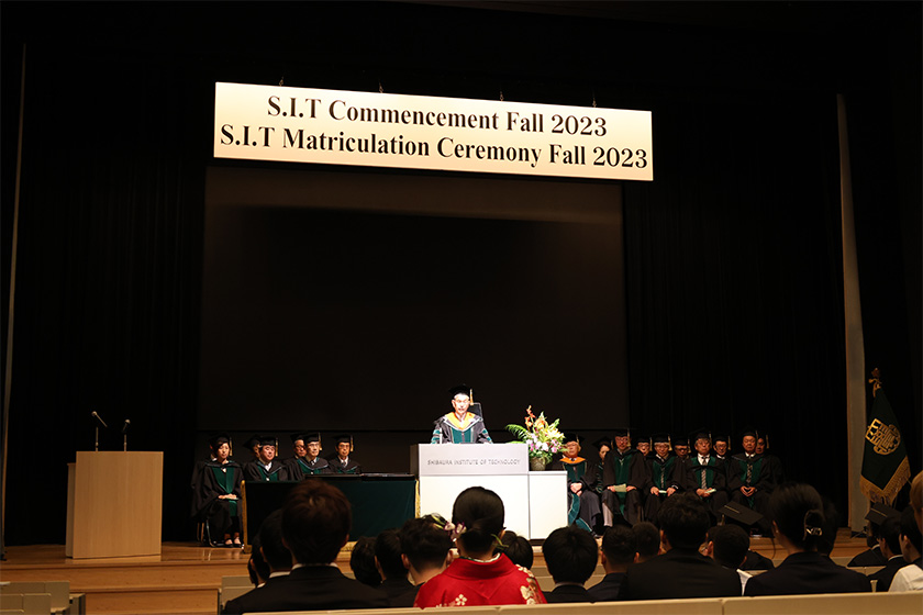对于需要在前景不明、未来难以预测的时代(VUCA)乘风破浪的毕业生们,山田纯校长在致辞中提到“机敏应对不同文化的能力”非常重要,大家在芝浦工业大学获得的知识和经验一定会有帮助。另外,铃见健夫理事长在致辞中赠言道,“希望大家一直保持挑战精神和行动力。”