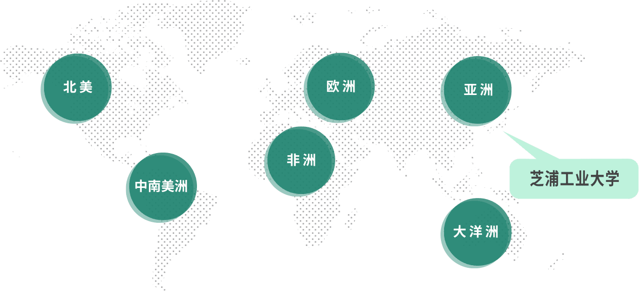 成为芝浦工业大学生的途径有多种多样。本校接收海外留学生,推动校内的国际化,同时为培养可在全球范围内大显身手的理工学人才做出贡献。